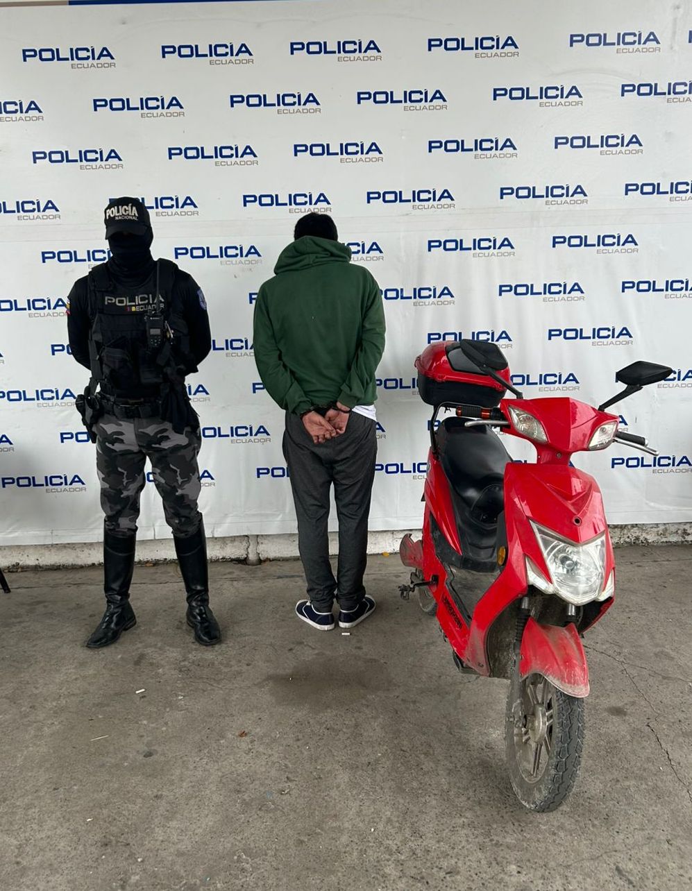 Durante el patrullaje por la avenida Arízaga, los agentes observaron a cinco sujetos que se movilizaban en dos motocicletas, uno de ellos despojaba a una ciudadana de su vehículo eléctrico.