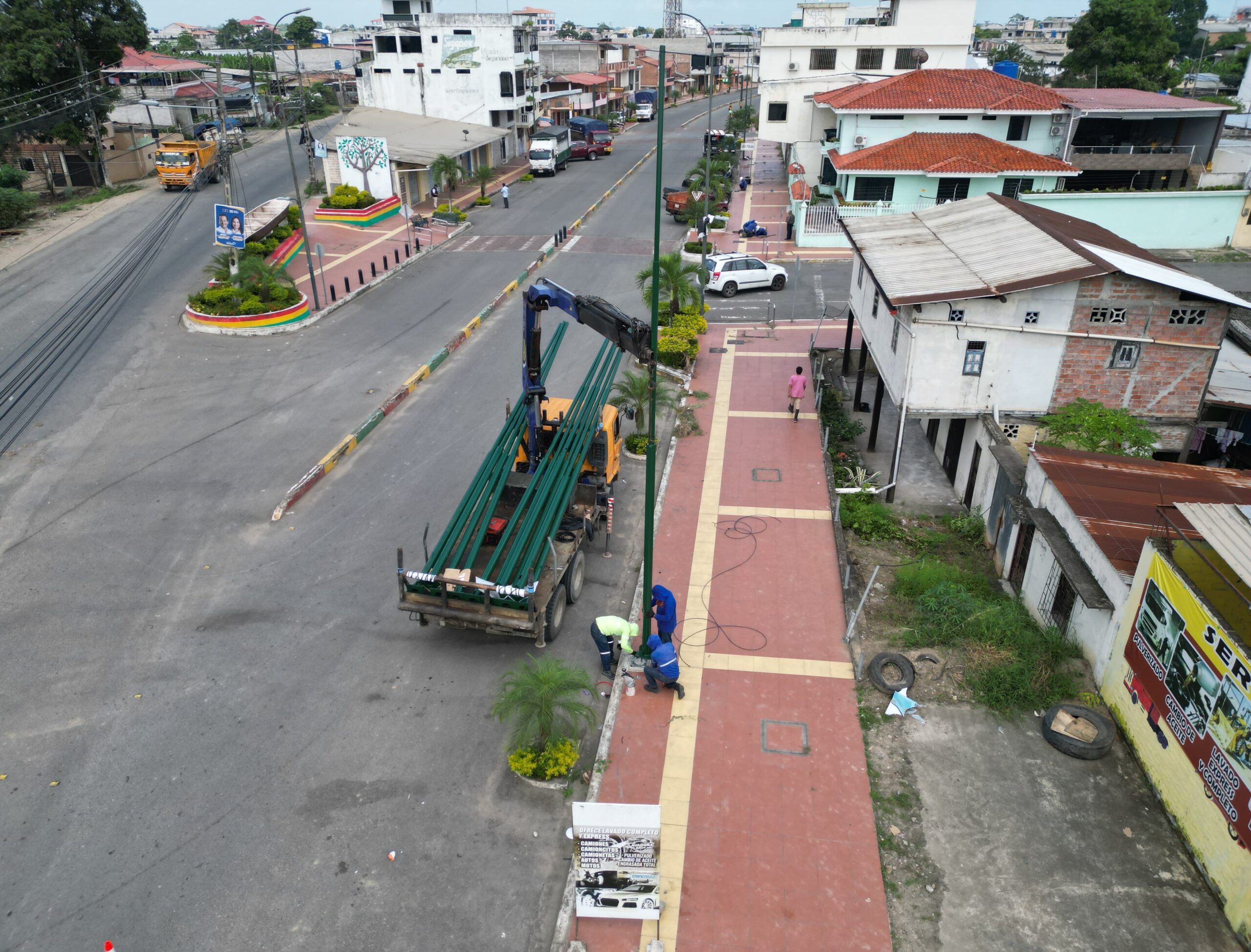 El Guabo.- Bajo la dirección del Alcalde Hitler Álvarez Bejarano, la Administración Municipal de El Guabo está llevando a cabo un ambicioso proyecto de iluminación pública que abarca la Av. del Ejército y varios parques del cantón. La iniciativa busca mejorar la seguridad y calidad de vida de los habitantes, así como embellecer los espacios públicos.En la Av. del Ejército, se están reemplazando los postes deteriorados y colocando nuevas luminarias para garantizar una iluminación adecuada y segura. Paralelamente, se están iluminando parques emblemáticos como el Parque Central, el Parque del Niño, el Parque de la Madre y el Parque Esperanza, ubicado en las afueras del hospital María Lorena Serrano.